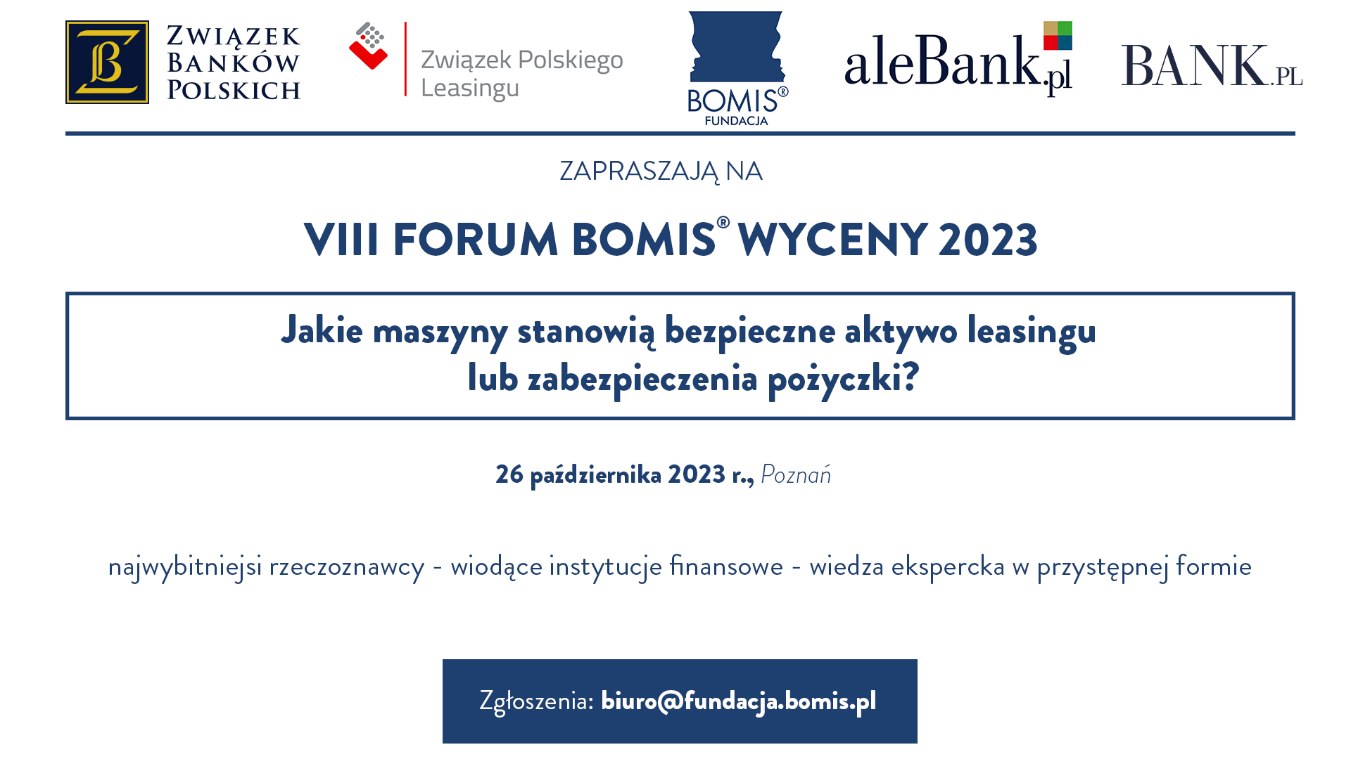 Zgłaszam uczestnictwo w konferencji BOMIS®: VIII Forum Bomis wyceny 2023 w terminie 26 października 2023 r.